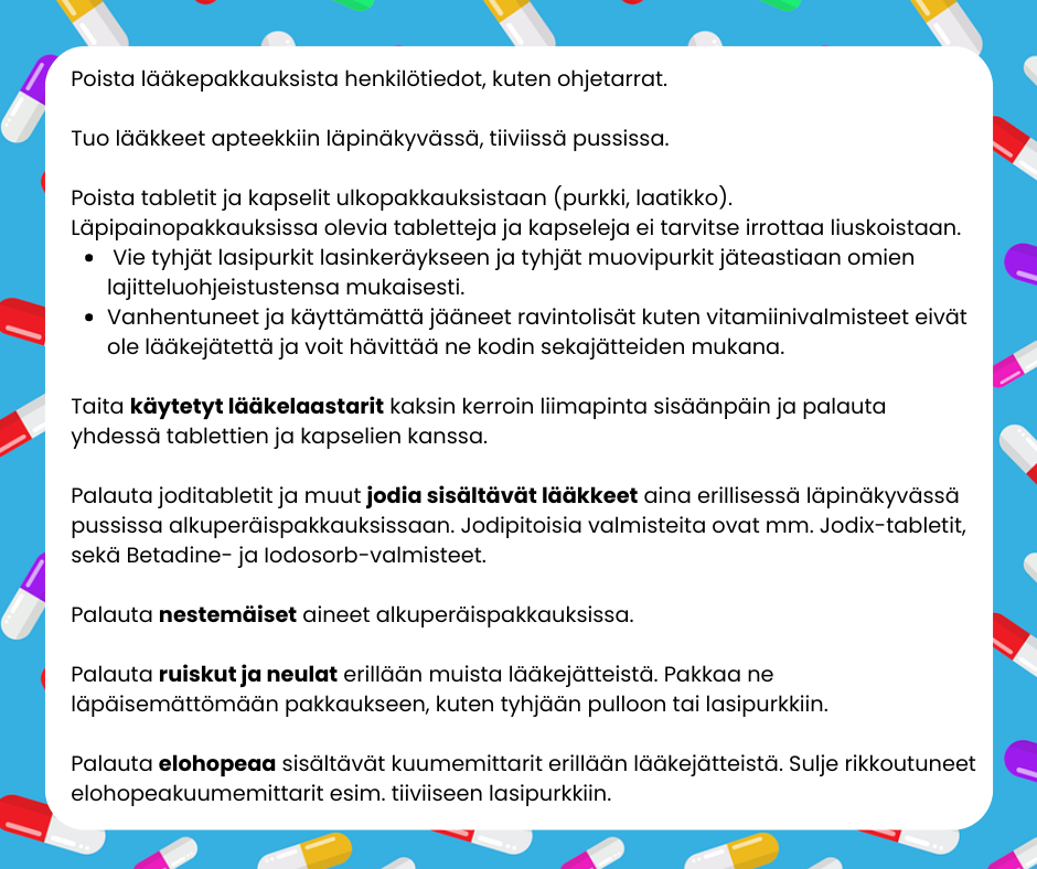 Näin palautat lääkejätteen apteekkiin